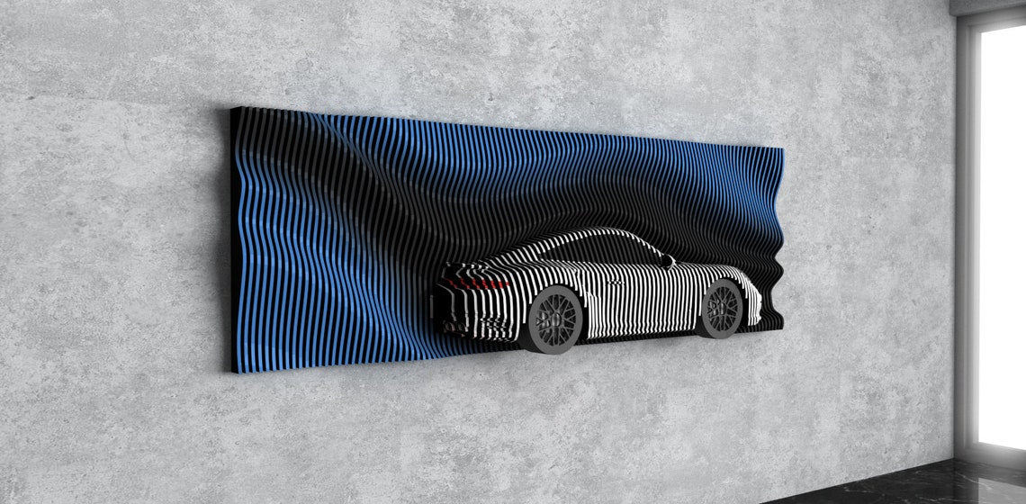 Transforme sua decoração com um painel em madeira de alta qualidade, inspirado no design de carros esportivos. Ideal para casas, escritórios e showrooms. Personalização disponível!