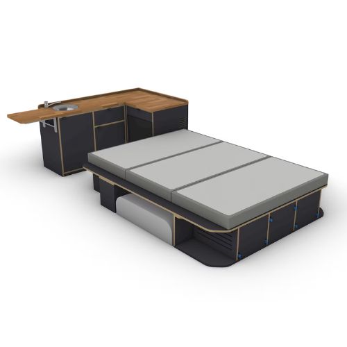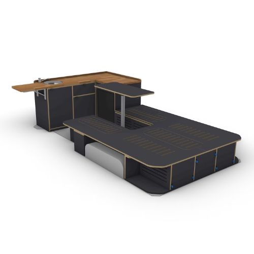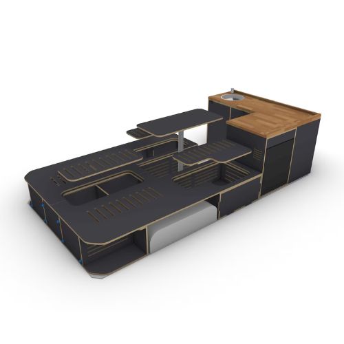 Transforme a sua Toyota Hiace com móveis robustos e elegantes em contraplacado de bétula 15mm, o material ideal para garantir resistência, durabilidade e um acabamento premium.